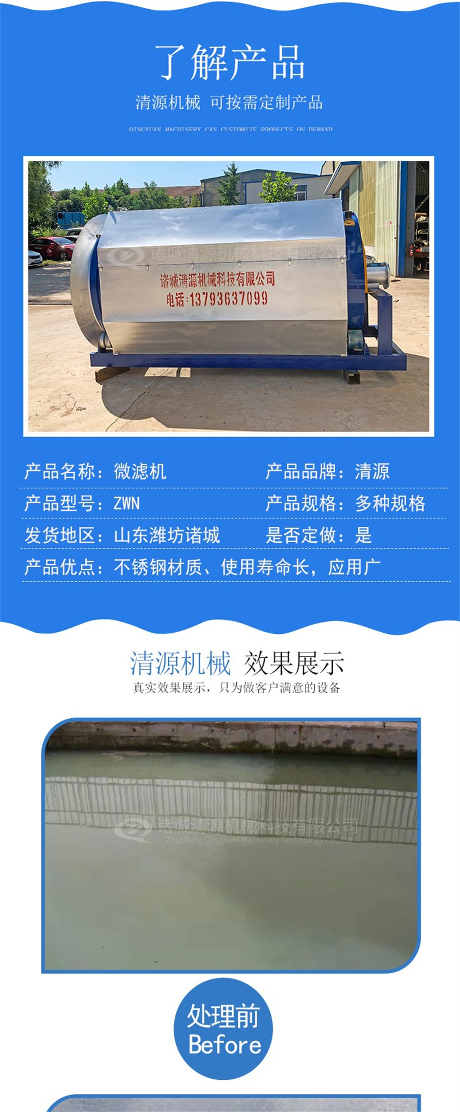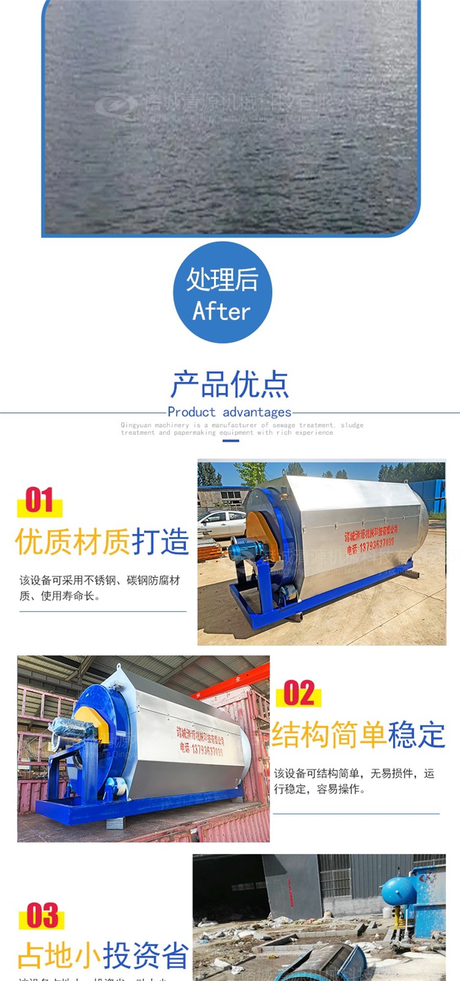 此外,我公司不僅生產(chǎn)微濾機,還生產(chǎn)農(nóng)村污水處理設(shè)備、氣浮機、固液分離設(shè)備、污泥壓濾機、造紙設(shè)備等其他環(huán)保設(shè)備。