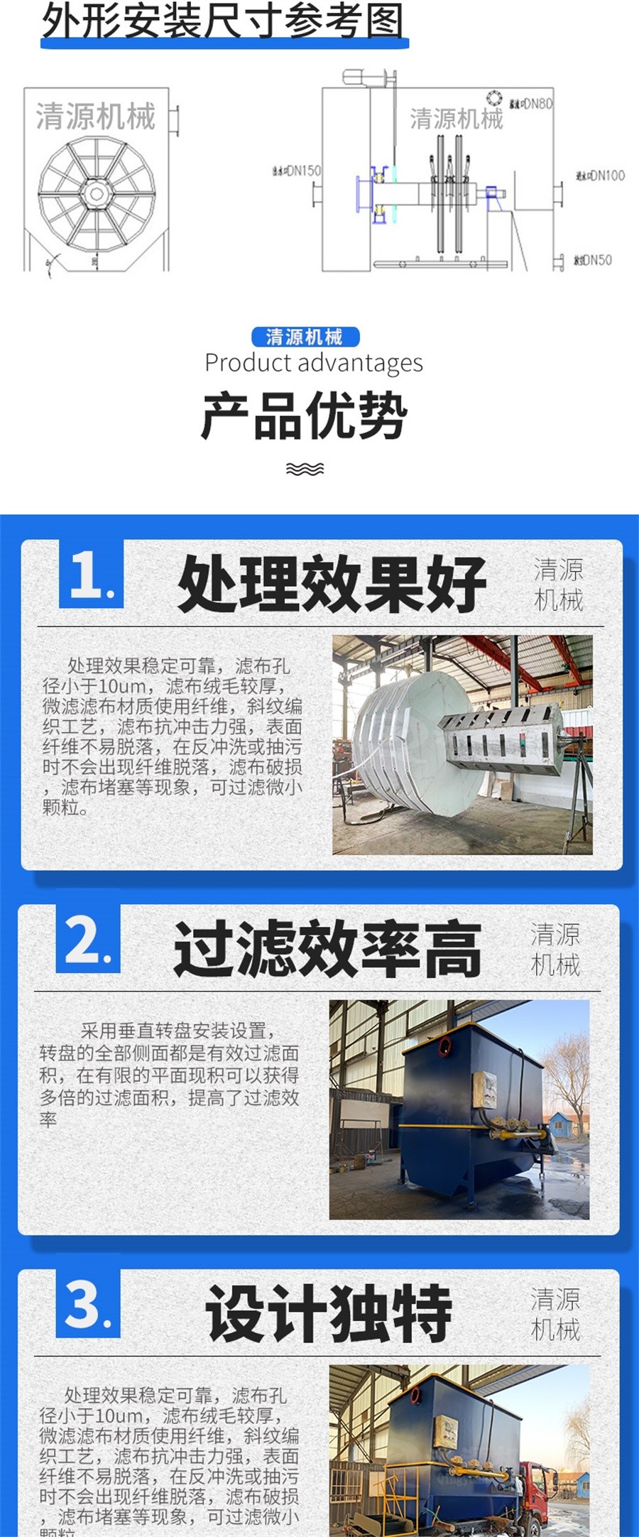 諸城清源機(jī)械科技有限公司纖維轉(zhuǎn)盤過濾器特點(diǎn):